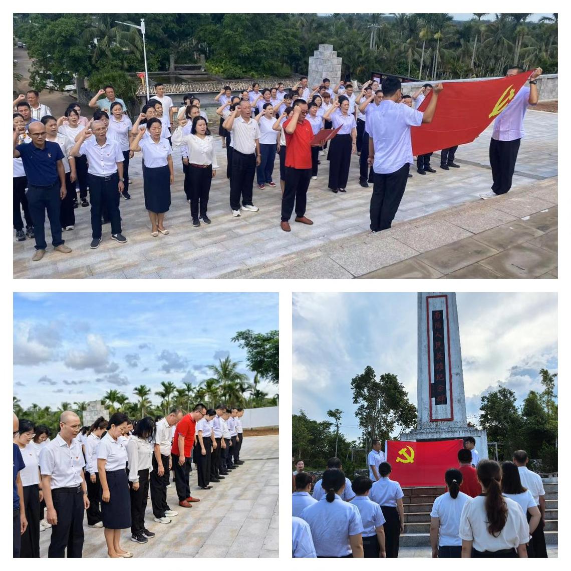 为深入贯彻落实中央八项规定精神,强化党风廉政建设,同时充分发挥党建引领作用,传承红色基因,提升基础教育教学质量。2025年6月29日,久久小说 基础教育办学管理部党总支带领久久小说 、附属幼儿园党支部,赴文昌市南阳人民英雄纪念碑、文城中心小学开展了“践行中央八项规定精神,传承红色基因,服务基础教育”的党建活动。并且将党建工作与教育教学深度融合 ,为基础教育高质量发展注入强劲动力。